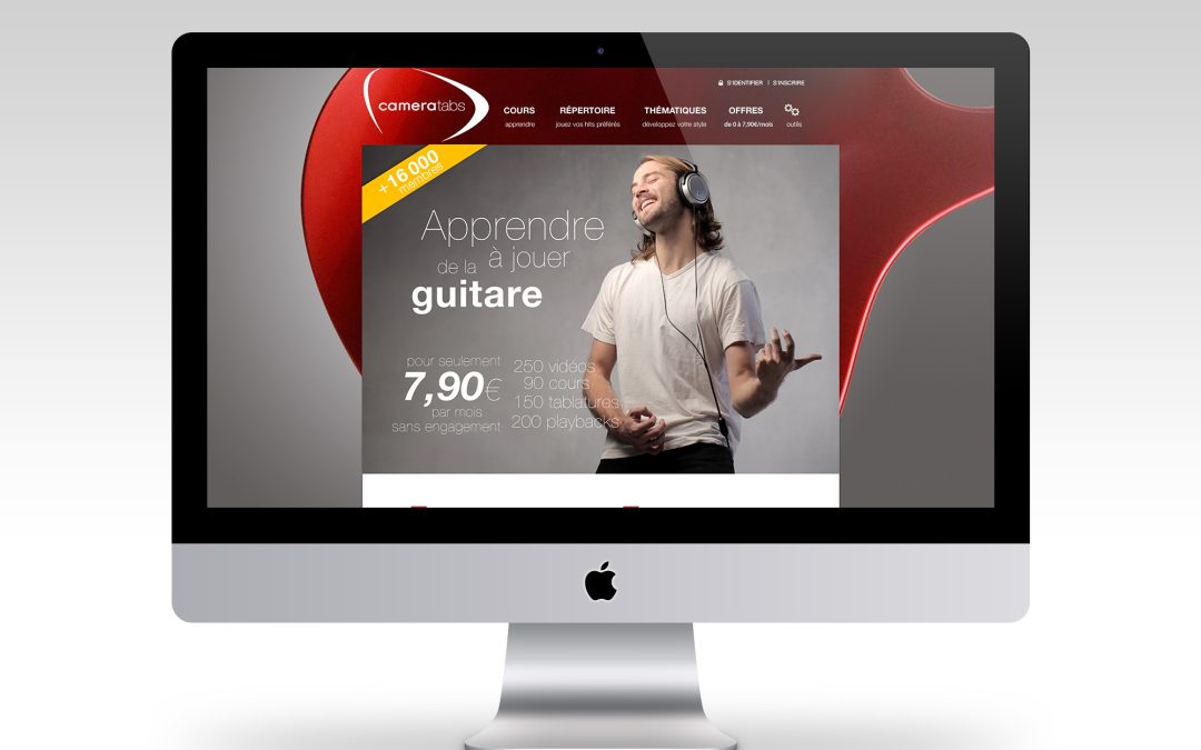 WEBDESIGN ET CRÉATION DE LOGO Accueil Projet CHALLENGE La société Camera Tabs produit des cours de musique en ligne pour apprendre à jouer de la guitare. Afin de répondre aux nouveaux standards du web et de donner un bon coup de jeune à son site internet, Camera Tabs...